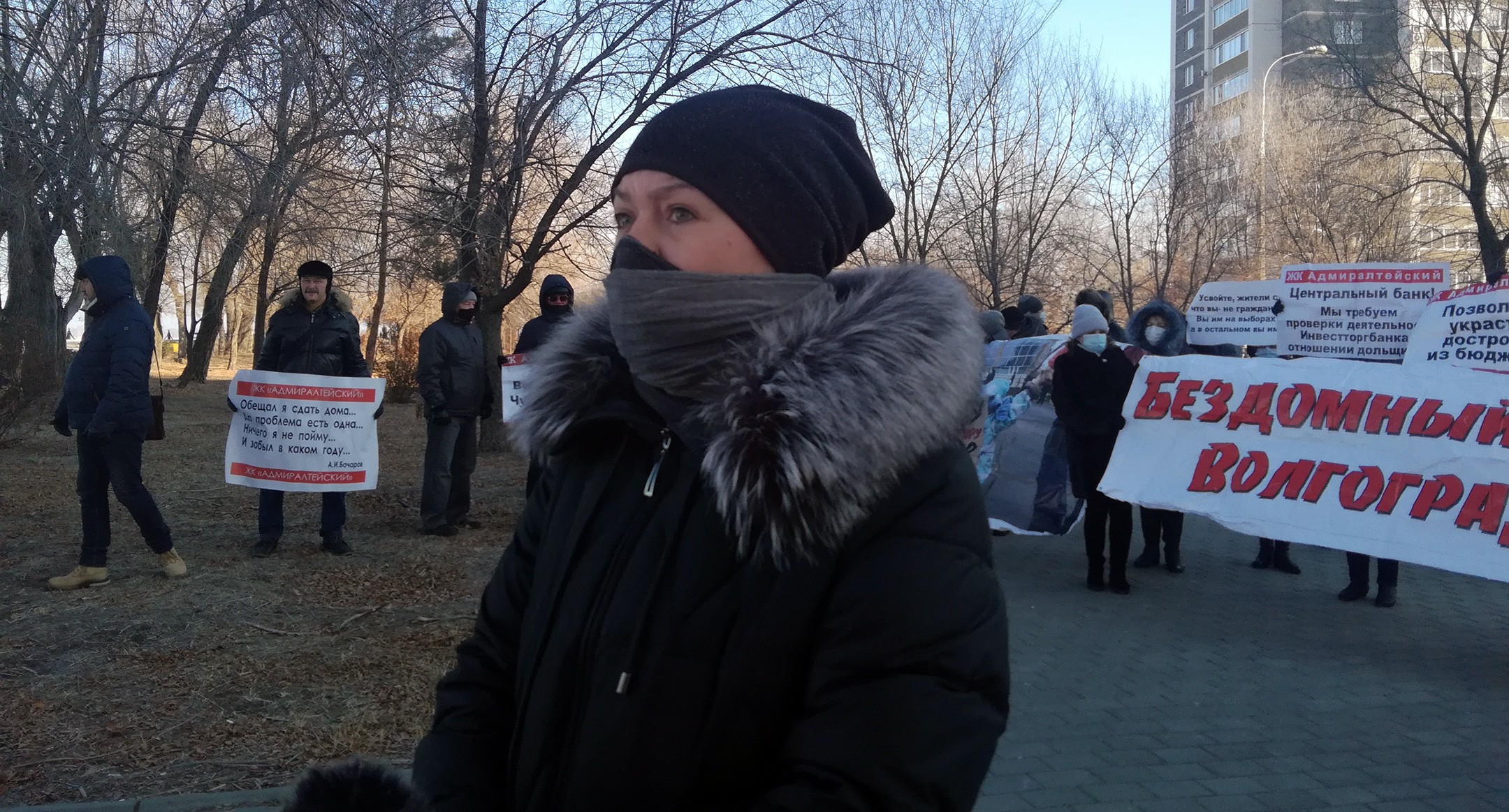 Дольщица была на акции протеста с ребенком. Она рассказала корреспонденту "Кавказского узла", что для покупки жилья в доме №3 ЖК "Адмиралтейский" семья продала бабушкину квартиру, взяла недостающую сумму в кредит. "Кредит для нас существенный: я инвалид третьей группы, не работаю. Пенсия моя уходит на съем – платим девять тысяч плюс свет, и примерно такую же сумму мы платим за кредит. То есть около 20 тысяч – это расходы на жилье. Живем на пенсию и зарплату мужа, у нас сын. Обещали нам тогда, в марте 2019 года, через два месяца квартиру сдать. Уже полтора года мы живем на съемной квартире. Каждый день ребенок спрашивает: "Когда игрушки будем перевозить?" - рассказала Кострыкина.