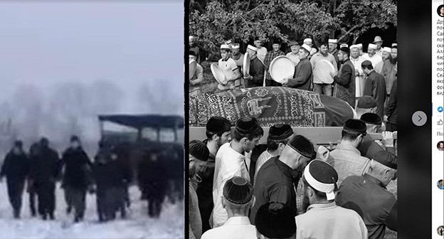 В соцсетях и мессенджерах распространяются видеозаписи, снятые во время похорон. Так, в Telegram-канале 1ADAT размещены три ролика с церемонии прощания. На этих записях видно, как большая толпа людей сопровождает к кладбищу тело человека на носилках, обернутое в зеленую ткань.