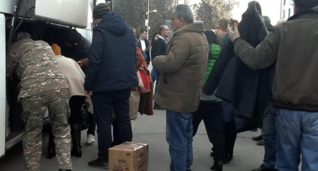 На автобусах из Еревана в Степанакерт доставлено 182 беженца, они прибыли в Армению при поддержке российских миротворцев, сообщило сегодня Минобороны России на своем сайте.