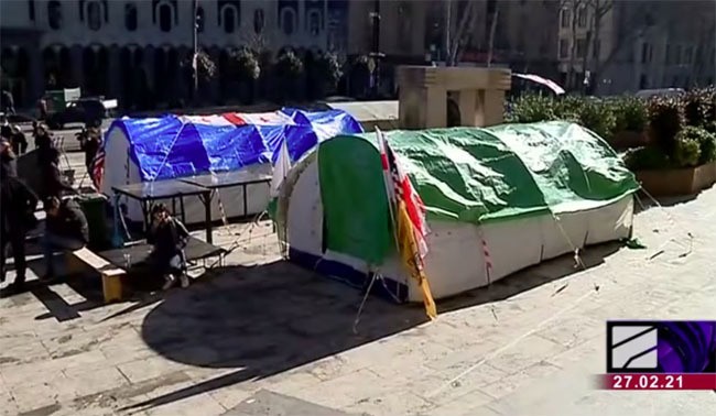 Участники акции протеста в Тбилиси разбили палаточный лагерь перед зданием парламента, к этому времени установлены около 11 палаток. Активисты намерены в течение дня увеличить число поставленных палаток. В частности, планируется, что они будут поставлены сторонниками оппозиции, которые прибудут сегодня, чтобы поддержать протестующих в Тбилиси, сообщило издание "Грузия Online".