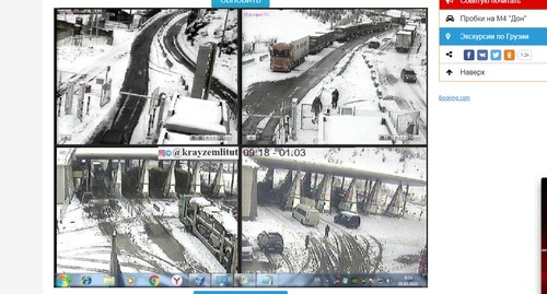 Согласно изображению с веб-камер на КПП "Верхний Ларс" по состоянию на 09.10 мск, как на въезде в Россию со стороны Грузии, так и на выезде наблюдается скопление грузовых автомобилей. Данные веб-камер обновляются каждые пять минут, говорится в публикации на сайте "Край земли".