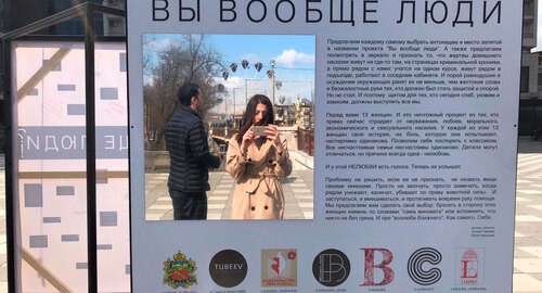 На фотографиях, представленных на выставке, изображены женщины, лица которых нельзя разглядеть – их скрывают разноцветные платки. Каждую фотографию сопровождает история – детальная исповедь женщины, пережившей насилие. На одном из стендов зеркало, а сверху надпись "Вы вообще люди" - этим автор предлагает заглянуть в зеркало, чтобы понять, что жертвы домашнего насилия живут не в криминальных хрониках, а среди знакомых и друзей и никто не застрахован от насилия.