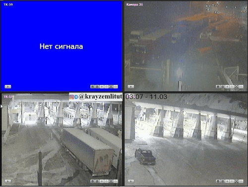 Согласно изображению с веб-камер на КПП "Верхний Ларс" по состоянию на 3.00 мск 11 марта, на выезде из России в Грузию выстроилась очередь из фур, конца которой не видно из-за поворота дороги. На самом КПП видна одна легковая машина. Сигнал с камеры, которая показывает ситуацию на автодороге на въезде в Россию из Грузии, отсутствует. На изображении с камеры обзора на самом контрольно-пропускном пункте на въезде в Россию видны две фуры. Данные веб-камер обновляются каждые пять минут, говорится в публикации на сайте "Край земли".