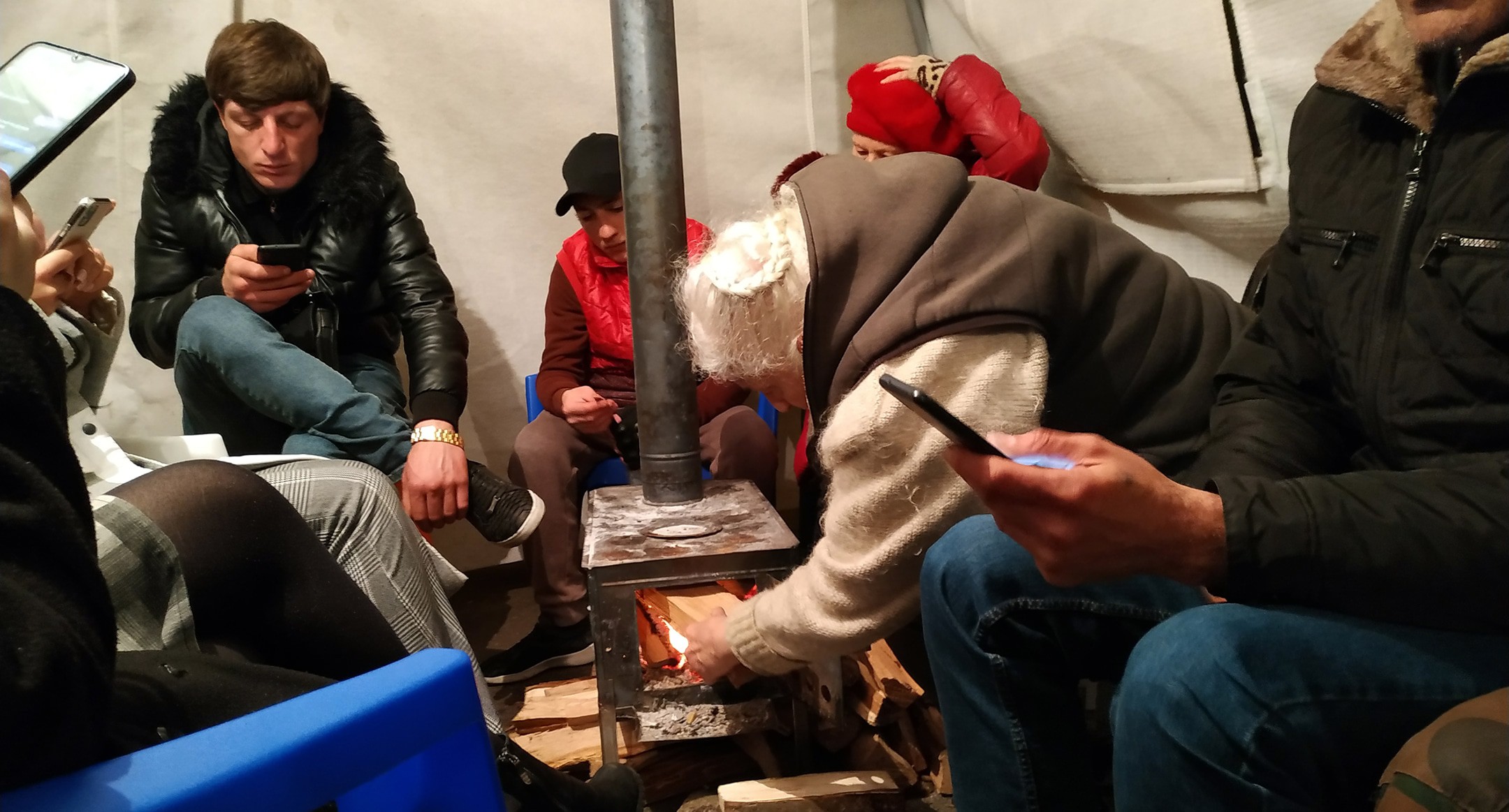 Активисты находятся в палатках, где установлены дровяные печи, с помощью которых протестующие обогреваются по ночам. Полицейские контролируют акцию на улице. Один из них подтвердил, что в течение дня инцидентов на площади не было. "Все прошло спокойно", - сказал он корреспонденту "Кавказского узла".