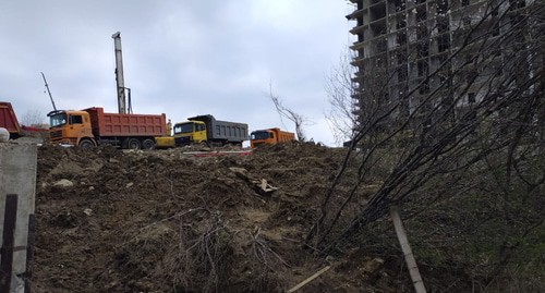 Выяснить, кто ведет строительство МКД на указанном участке, корреспонденту "Кавказского узла" не удалось, так как рабочие отказались говорить, на кого работают. На заборе, огораживающем стройплощадки, отсутствовал паспорт объекта.
