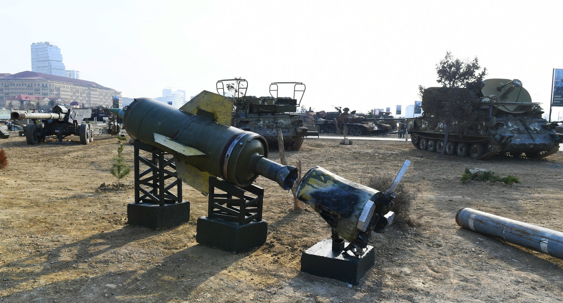 Обломки ракет от «Искандеров» выставлены в Бакинском парке военных трофеев