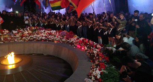 Факельное шествие в память жертв геноцида армян в Османской империи в Ереване прошло под девизом «Признание, осуждение, возмещение!». Участники акции призвали добиваться компенсаций от Турции.