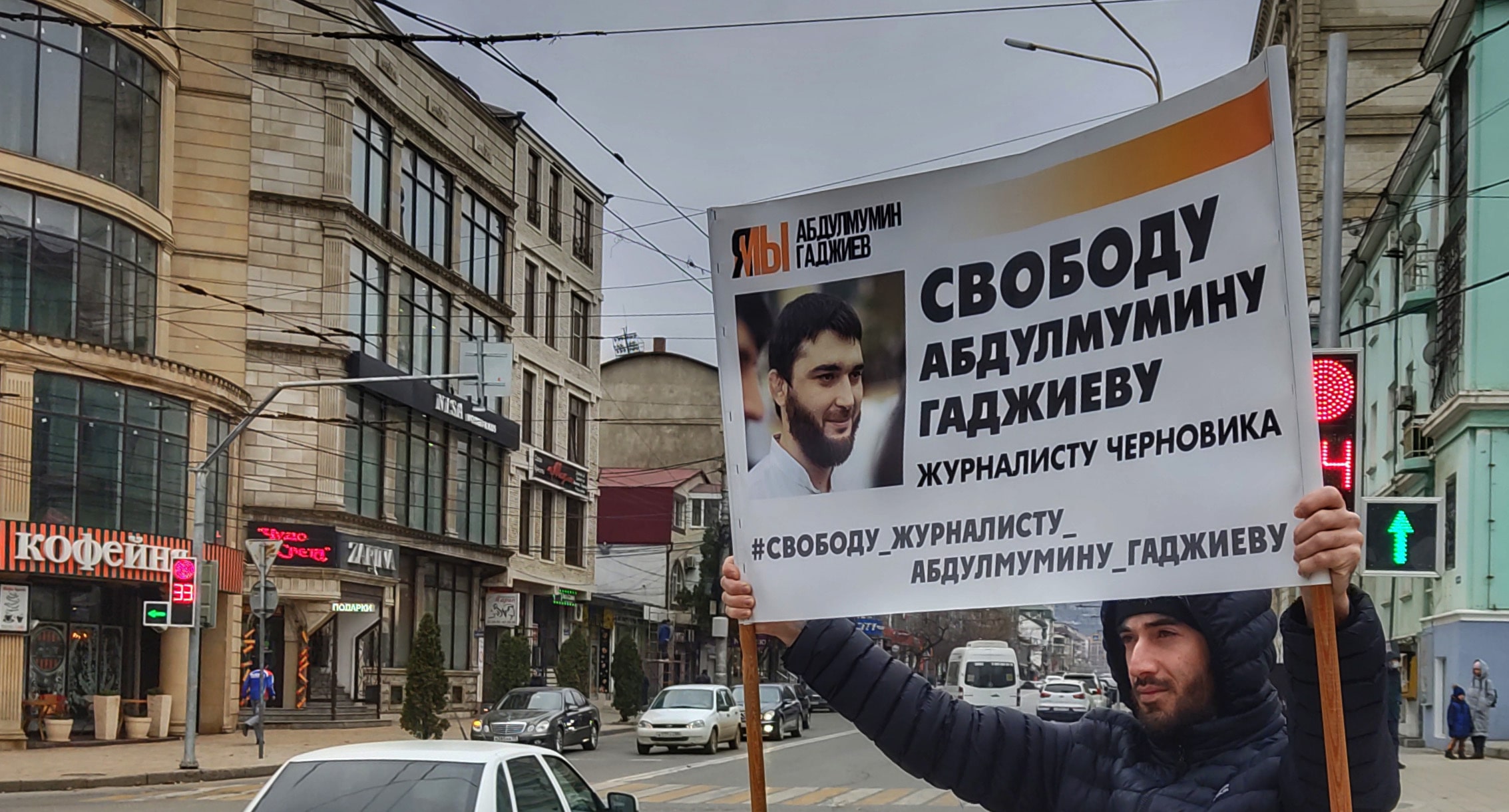 Как писал "Кавказский узел", коллеги и друзья журналиста "Черновика" Абдулмумина Гаджиева регулярно проводят в Махачкале пикеты в его поддержку. 12 апреля участники пикетов в Махачкале потребовали освободить журналиста и положить конец практике бездоказательных арестов.