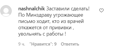 "Заставили сделать! [...] кто из врачей откажется от прививки, [пригрозили] увольнять с работы!" - написала nashnalchik.
