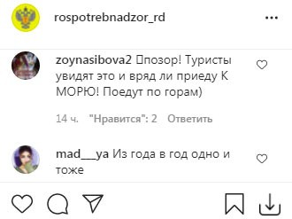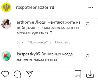 Эта публикации на странице Роспотребнадзора по Дагестану в Instagram, на которую подписаны около 28,5 тысячи пользователей к 11.10 мск 29 мая набрала 245 отметок "нравится" и 43 комментария. Большая часть их авторов возмутилась антисанитарией на пляжах.