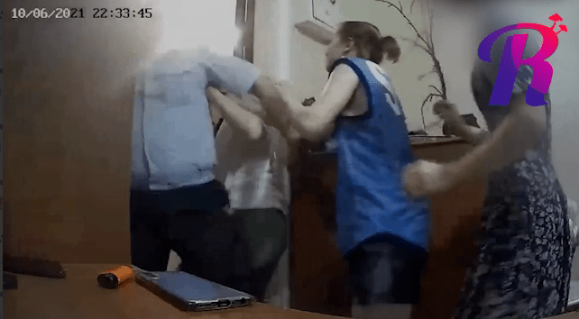 Девушка приоткрывает дверь, не сходя с порога и не впуская никого внутрь. Женщина, просившая открыть дверь, тоже подходит к порогу. О чем они говорят с людьми в подъезде, не слышно, но вскоре девушку начинают тянуть наружу, и поднимается громкий женский крик. На помощь прибегают еще три девушки. Они стоят в дверях и не пускают никого внутрь. Происходит потасовка, в ходе всех, за исключением одной девушки, вытягивают в подъезд. Один из участников потасовки одет в форменную голубую рубашку. После потасовки в квартиру заходит мужчина в гражданской одежде, он сразу выключает камеру, которая и запечатлела произошедшее.