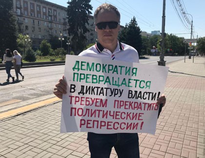 Вышедший на пикет Сергей Инталев пояснил, что проводит его с требованием прекратить политические репрессии и отменить трехдневное голосование. "Человека, который просит мирным способом каких-то изменений, нужно слушать. В нашем случае это происходит карательными методами. Даже конкретно в мое случае. Вот сейчас под деревом стоят пять сотрудников полиции. Когда лично мне нужна была помощь и я позвонил и сообщил о преступлении, они не приехали. Сейчас их стоит пять человек , ровно два часа они стоят и за нами наблюдают", – сказал активист корреспонденту "Кавказского узла".