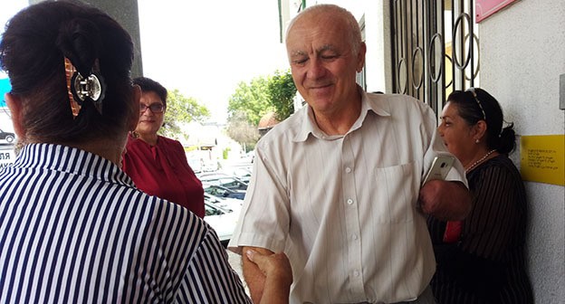 Фатима Аталикова рассказала, что знает Аслана Иритова давно, работала с ним, знает его как добропорядочного человека, который всегда за справедливость. "Аслан пострадал из-за нас. Он хотел нам помочь, хотел, чтобы мы получили участки земли и что-то себе построили. Я, например, 38 лет живу в общежитии с семьей из пяти человек на 34 квадратных метрах. Мои дети спят на полу, поскольку кровать поставить негде. Аслан добивался, чтобы власти раздали нам участки земли. Они за это стали его преследовать. Мы его поддерживаем, поэтому мы здесь", - заявила женщина.