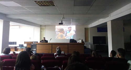 "Я решил, что если свести презентацию к чтению отрывков из книги, то человеку потом будет скучно читать саму книгу. Поэтому я уделил больше внимания визуальной части и разговорам о Дагестане", – пояснил автор корреспонденту "Кавказского узла".