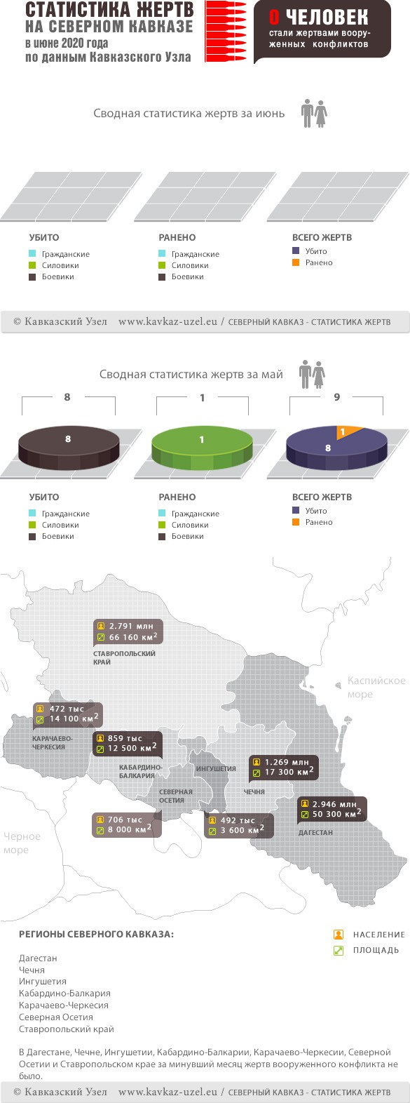 Инфографика. Статистика Жертв на Северном Кавказе в июне 2020 года по данным Кавказского Узла