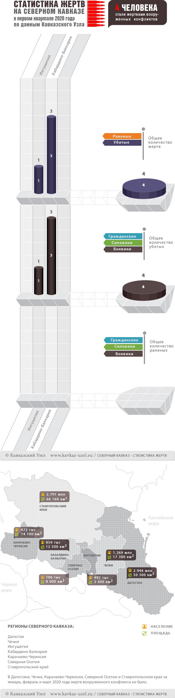 Инфографика. Статистика жертв на Северном Кавказе в первом квартале 2020 года по данным Кавказского Узла