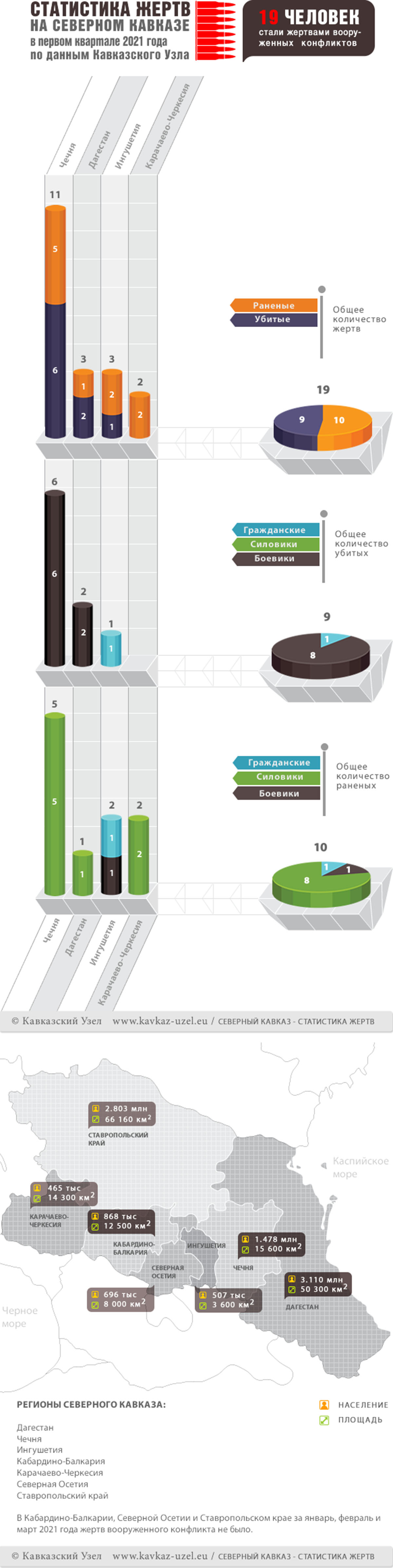 Инфографика. Статистика жертв на Северном Кавказе в первом квартале 2021 года по данным Кавказского Узла