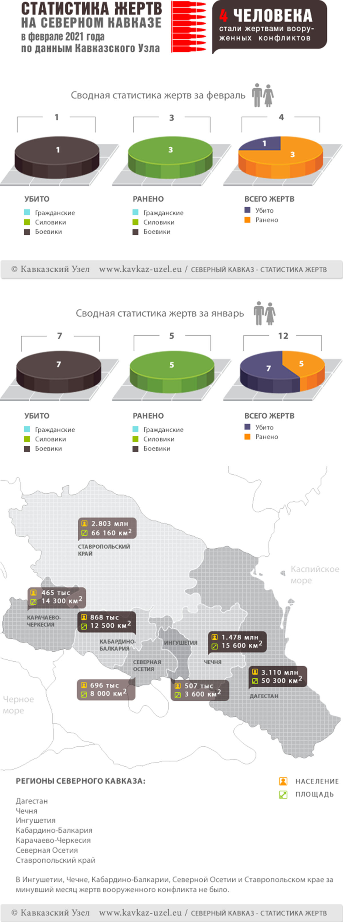 Инфографика. Статистика жертв на Северном Кавказе в феврале 2021 года по данным Кавказского Узла