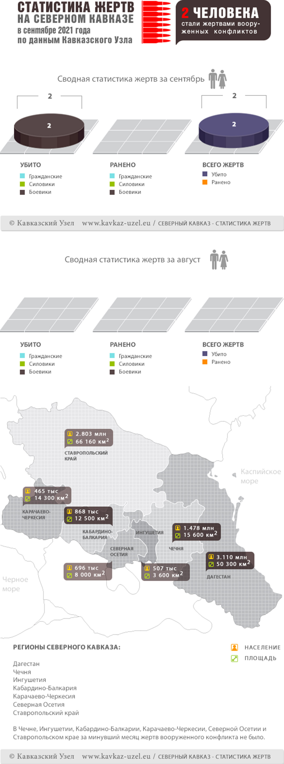 Инфографика. Статистика жертв на Северном Кавказе в сентябре 2021 года по данным Кавказского Узла