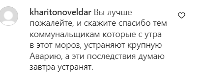 "Скажите спасибо тем коммунальщикам, которые с утра в этот мороз устраняют крупную аварию", – отметила kharitonoveldarа.
