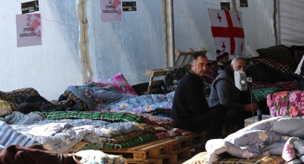 В массовой голодовке, проходящей в Тбилиси в палатках перед центральным офисом оппозиционной партии "Единое национальное движение" с требованием освобождения Михаила Саакашвили, принимают участие 150 человек, среди них четыре женщины. Накануне три человека прекратили голодовку по состоянию здоровья, последовав рекомендациям врачей.