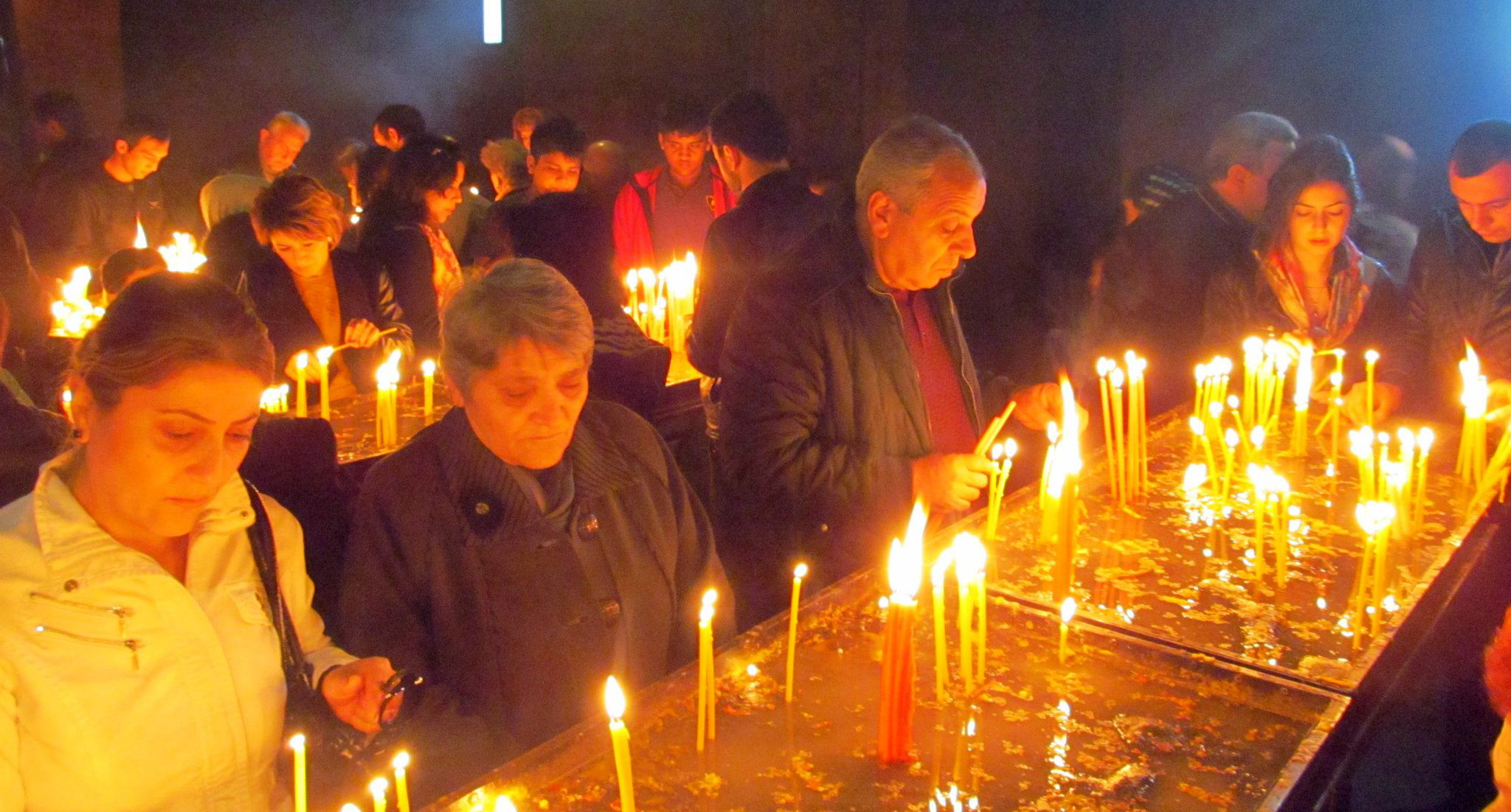 В храмах Армянской апостольской церкви в канун Богоявления прошли праздничные литургии, после которых верующие с зажжёнными свечами и лампадами отправились домой на семейные праздничные застолья.