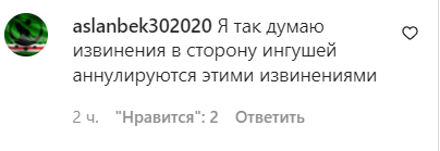 "Я так думаю, извинения в сторону ингушей аннулируются этими извинениями", - предположил в комментарии к видеоролику aslanbek302020.