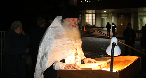 На Центральной площади Красного Сулина, по подсчетам корреспондента "Кавказского Узла", 18 января, в Крещенский Сочельник собрались 350-400 человек. Люди принесли с собой для освещения воду, зажгли свечи. Отец Александр зачитал молитву, после чего прошёл по кругу, освятив воду принесенную людьми.