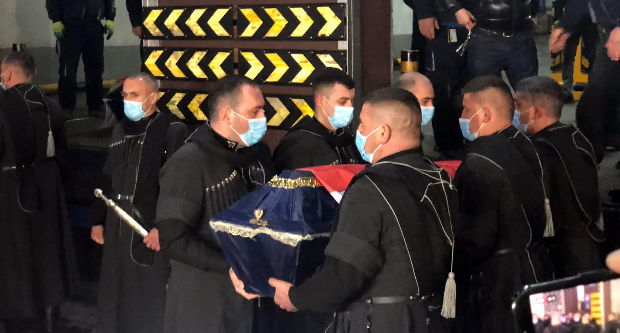Агентство также опубликовало ролик, на кадрах которого показаны автомобили, припаркованные по обеим сторонам улицы. Также по обеим сторонам, встав на одно колено, выстроились люди, преимущественно мужчины. Позади них стоят еще люди, некоторые из них держат в руках свечи и флаги Грузии. По улице медленно движется полицейская машина с включенной мигалкой, за ней едут две машины черного цвета, на крышах которых закреплены полотнища флагов Грузии и Украины. Колонну замыкают еще две полицейские машины с включенными мигалками. Вслед за колонной едет несколько гражданских автомобилей. Действие происходит в темное время суток.