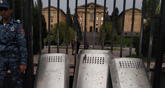 Силовики стянули к зданию парламента усиленные подразделения. Полиция в касках со щитами выставила кордон в несколько рядов на пересечении проспекта Баграмяна и улицы Демирчян. Во дворе парламента видны силовики с автоматами в балаклавах. На здании парламента замечены снайперы. Полицейские кордоны также выставлены вокруг парламентского ограждения, а сама территория обнесена светошумовыми гранатами, соединенными между собой проводами.