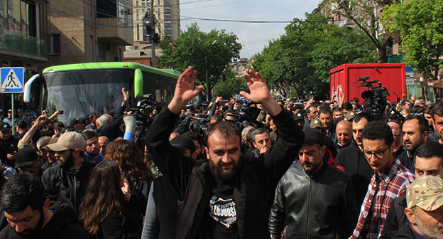 Как писал "Кавказский узел", сегодня оппозиция возобновила в Ереване протестные шествия с требованием отставки правительства. Активисты перекрыли улицы, и силовики начали задерживать участников акции. По обвинению в неподчинении силовикам задержаны 414 человек, сообщили в полиции. Сын бывшего главы ОДКБ Юрия Хачатурова Игорь был арестован по подозрению в нападении на полицейского во время акции протеста.