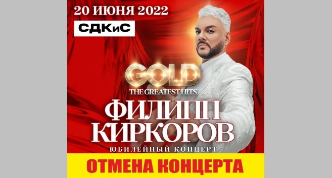 "По независящим от Ставропольского Дворца культуры и спорта причинам концерт Филиппа Киркорова отменяется. Возврат билетов - в кассе Ставропольского Дворца культуры и спорта", - сказано в сообщении на сайте дворца культуры. Билеты можно будет также сдать в городских кассах, средства от покупки онлайн-билетов вернутся автоматически, сообщила организация.