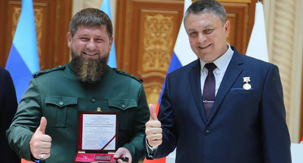 Глава Чечни Рамзан Кадыров получил звание Героя Луганской народной республики, а глава ЛНР Леонид Пасечник награжден орденом Кадырова.