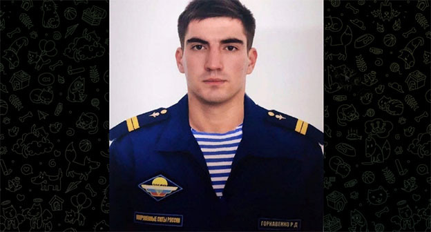 Сообщение проиллюстрировано фотографией Горкавенко в форме с нашивкой "Вооруженные силы России".