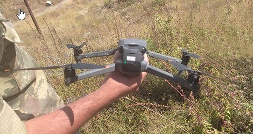 "13 августа примерно в 10.30 (09.30 мск) квадрокоптер незаконных армянских вооруженных формирований на территории Азербайджана, где временно размещены российские миротворцы, попытался совершить разведывательный полет над позициями наших подразделений в окрестностях города Шуша. Благодаря бдительности наших подразделений квадрокоптер был своевременно обнаружен, посажен особым способом и перехвачен", - сказано в сообщении ведомства, поступившем корреспонденту "Кавказского узла". Минобороны также распространило фото и видеокадры перехваченного дрона.