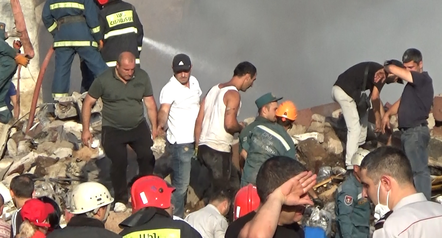 Как писал "Кавказский узел", взрыв произошел 14 августа в оптово-розничном торговом центре "Сурмалу" в Ереване. После взрыва на складе фейерверков начался сильный пожар, часть здания обрушилась. Под завалами торгового центра обнаружены тела троих погибших, а общее число пострадавших превысило 60 человек.