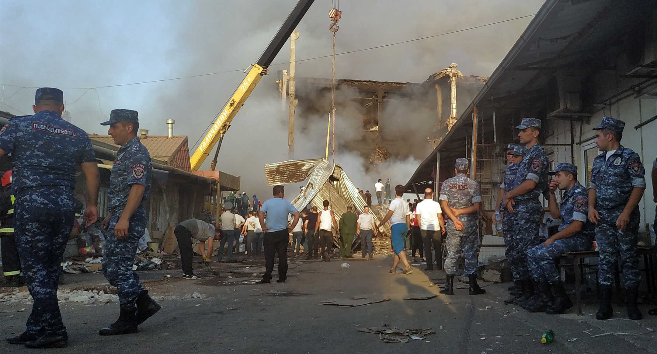 14 августа взрыв произошел на складе фейерверков в оптово-розничном торговом центре "Сурмалу" в Ереване. После взрыва начался сильный пожар, часть здания обрушилась. Общее число пострадавших превысило 60 человек.
