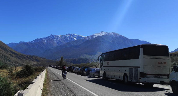 Людей без транспортных средств начали пропускать через границу с Грузией, после чего с российской стороны на пункте пропуска "Верхний Ларс" выстроилась огромная очередь из желающих перейти границу пешком, сообщил автор обнародованного 26 сентября в Telegram видео. Сотрудники полиции не пускают автомобили в сторону границы, и желающим выехать из России в Грузию приходится идти к пункту пропуска пешком или покупать велосипеды и скейтборды. Таксисты отказываются ехать к "Верхнему Ларсу" либо требуют за проезд слишком большие суммы, рассказали выезжающие.