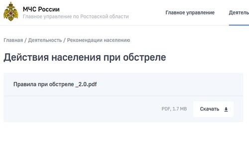 Памятку на случай артиллерийских обстрелов жители Ростовской области могут скачать с сайта управления МЧС, и распространять ее печатную версию не планируется, сообщили в региональном правительстве.