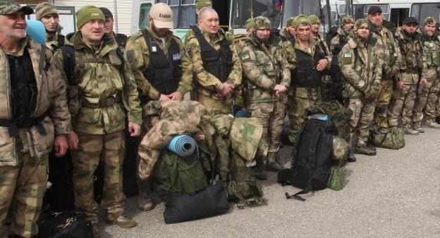 Проводили добровольцев председатель парламента Чени Магомед Даудов, вице-премьер Абузайд Висмурадов и глава МВД Чечни Руслан Алханов.