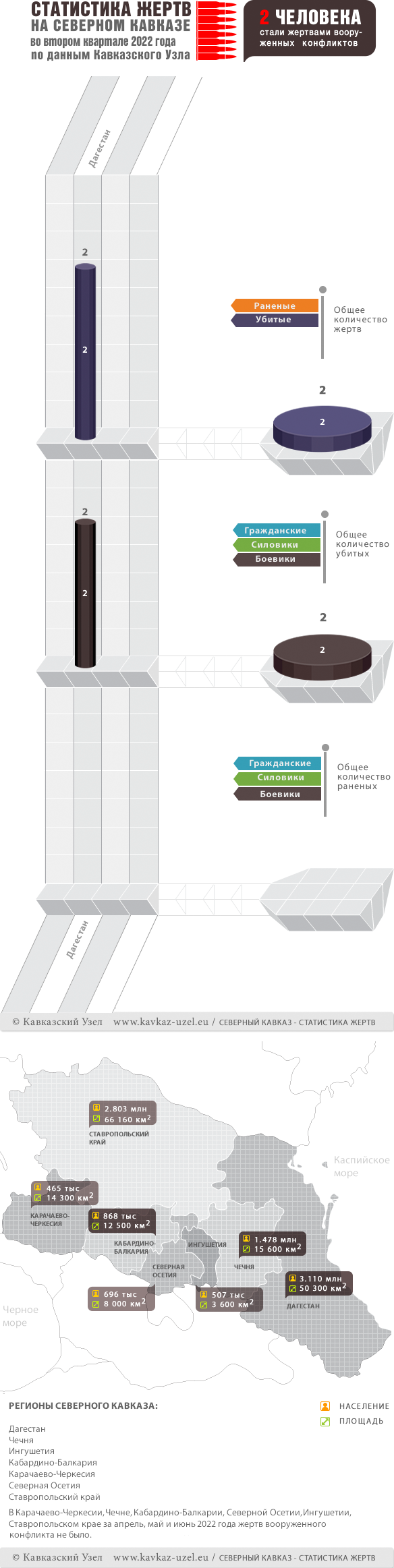 Инфографика. Статистика жертв на Северном Кавказе во втором квартале 2022 года по данным Кавказского Узла