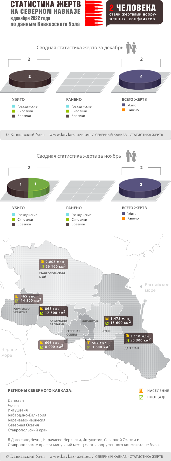 Инфографика. Статистика жертв на Северном Кавказе в декабре 2022 года по данным Кавказского Узла
