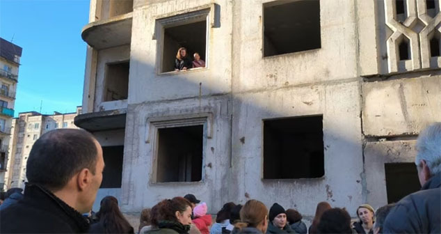Участники акции через какое-то время переместились к недостроенной многоэтажке неподалеку. Отвечая на вопрос журналистки, участница акции рассказала про этот дом. "Этот дом мы нашли пустым, чтобы заселить наших людей", - сказала она.