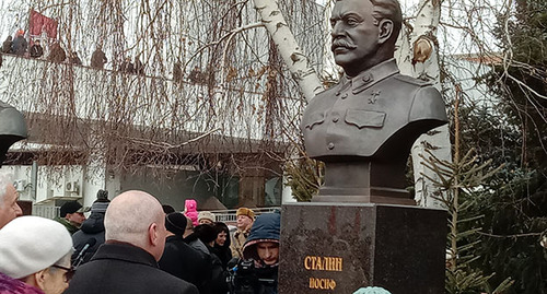Во время акции памяти пожилая женщина целовала гранитный постамент с бюстом Сталина и крестилась. Корреспондент "Кавказского узла" спросил женщину, почему она крестится, ведь Сталин был атеистом. "Все под Богом ходим. И Сталин ходил", - ответила пенсионерка.