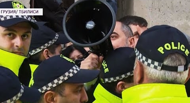 Вечером полиция прибегла к задержанию участников акции протеста у парламента, которые хотели устроить "коридор позора" для депутатов парламентского большинства. Троих протестующих полицейские силой посадили в машину в прямом эфире телеканала "Формула", попытки лидера ЕНД Левана Хабеишвили помешать задержаниям не увенчалась успехом. После этого протестующие забросали полицейскую машину яйцами.