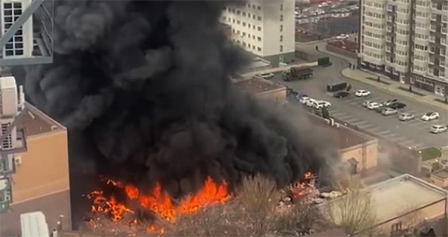 Telegram-канал "Baza" опубликовал несколько роликов, на кадрах которых показано здание погрануправления ФСБ в Ростове-на-Дону, от которого идет густой дым.