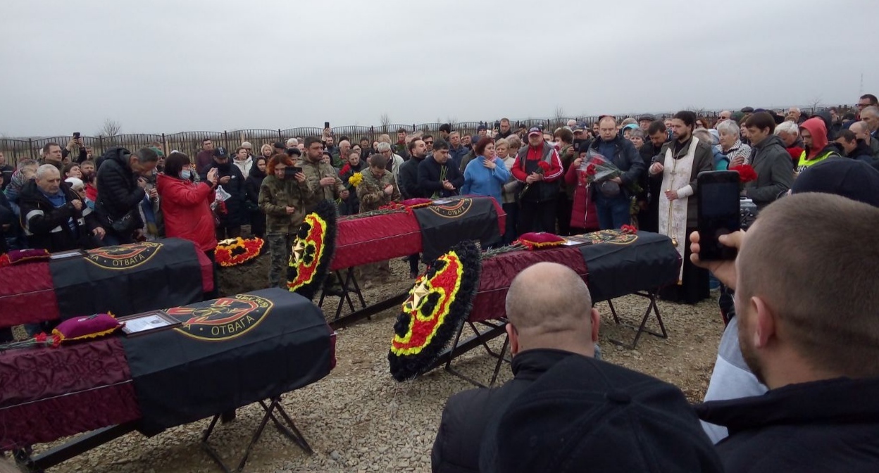 Как писал "Кавказский узел", 17 марта глава Горячего Ключа Сергей Белопольский, сославшись на мнение горожан, высказался против массового захоронения в городе-курорте участников военной операции. В Краснодарском крае достаточно для этого других мест, пояснил он. Депутат Госдумы, бывший мэр Краснодара Евгений Первышов в ответ предложил Белопольскому уволиться и отправиться добровольцем на Украину, а основатель ЧВК "Вагнер" Евгений Пригожин пообещал похоронить 19 марта бойцов в Горячем Ключе вопреки позиции мэра.