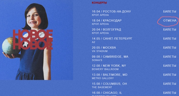 На сайте группы указано, что концерт в Краснодаре отменен.