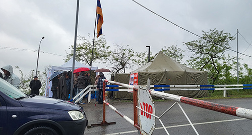 Мирная акция карабахских активистов на дороге Шуши-Степанакерт проходит в районе пригорода Степанакерта под названием Зарин Баг. Здесь стоит последний КПП полиции Нагорного Карабаха. Дальше, по дороге в Шуши, размещены посты миротворцев.