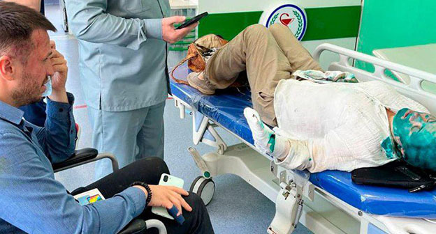 В государственных СМИ Чечни первое сообщение с упоминанием нападения появилось в 11.20 мск. "Уполномоченный по правам человека в ЧР Мансур Солтаев сопровождает журналистку Елену Милашину и адвоката Александра Немова, которых на машине скорой помощи везут из Грозного в больницу в Беслан", - сообщило информагентство спустя шесть часов после первых сообщений об инциденте.